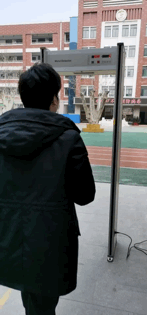YABO鸭脖人体测温安检门应用于学校防控,高精度微型24小时动态红外体温监测仪,全方位对通行人员进行体温扫描筛查。